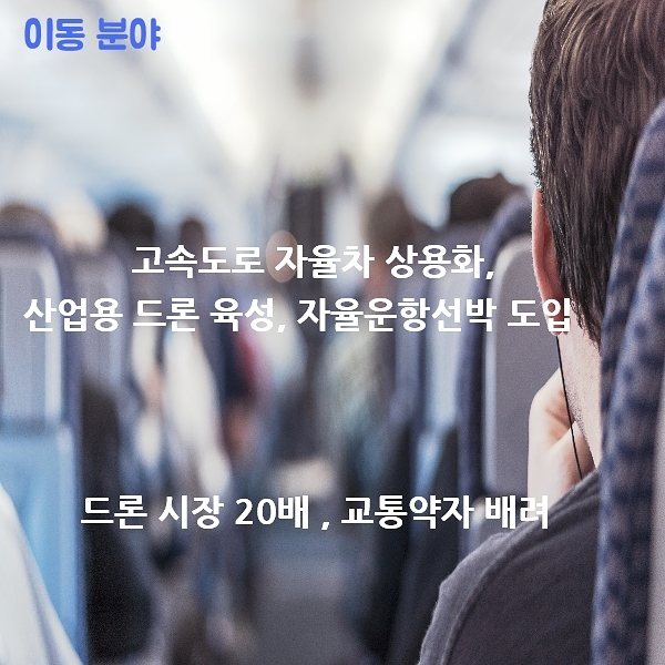 이동체 관련해서는 ‘무인이동체 기술혁신과 성장 10개년 로드맵’을 연내 마련하고, 육‧해‧공 무인이동체에 모두 적용되는 6대 공통원천기술 및 차세대 플랫폼 개발‧공급을 내년부터 추진한다. 2022년까지 드론 시장 규모를 20배 확대하고, 자율선박 최초운항을 실현한다.