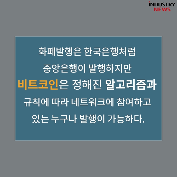 비트코인은 일반 화폐처럼 한국은행과 같은 중앙은행이 발행하는 것이 아니라 정해진 알고리즘과 규칙에 따라 네트워크에 참여하고 있는 누구나 발행이 가능하다. 또 오픈소스인 탓에 누구도 비트코인을 조종하지 않는다.