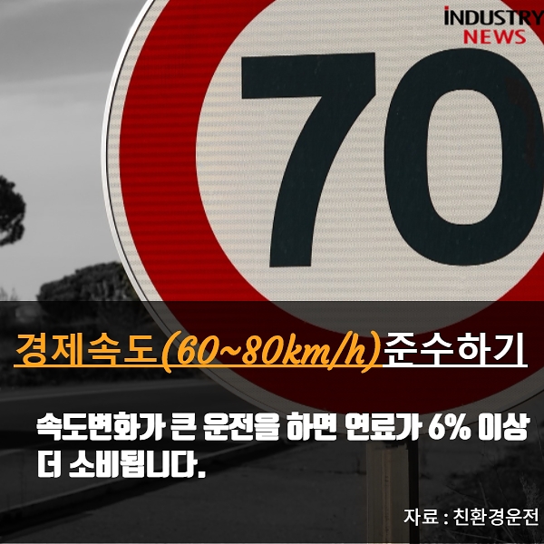 경제속도(60~80km/h)를 준수하고 교통상황에 따라 정속주행을 하면 연비를 높이고 배출가스도 줄일 수 있다. 속도변화가 큰 운전을 하면, 연료가 6% 정도까지 더 소비된다.