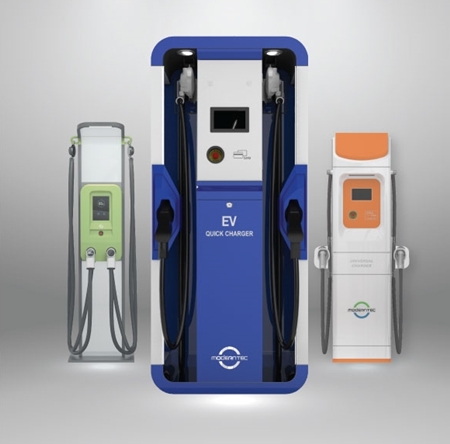모던텍에서 개발한 세계 최초 지능형 EV 충전시스템은 태양광 발전 에너지저장장치(ESS)와 연동해 충전스테이션 구축이 가능하며 캐비닛 형태로 개발돼 설치 공간 최소화와 설비 증설이 간편한 충전시스템이다. 신기술 인증 및 특허권 기반의 기술로 완·급속 통합형 충전시스템을 제공하고 충전시간을 30% 단축시키며, V2G 기술 구현이 가능하다.