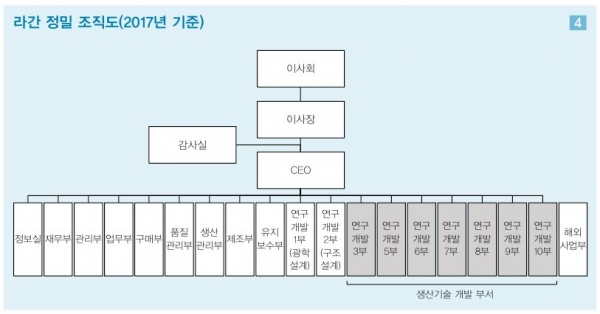 재무 총 책임자(CFO), 생산 총 책임자(COO) 등과 동등한 위상의 부서장 7명이 생산 기술 개발에 배치됐다.