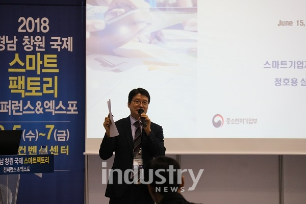 정호영 실장은 경남 창원 국제 스마트팩토리 컨퍼런스 & 엑스포에서 “생산현장디지털화사업은 기존 시스템 개선과 스마트공장 설비와 연계를 위한 IoT 적용과 실시간 모니터링 범위 확대를 위한 설비의 추가 도입 등 기존 시스템과의 연동에 중점을 두고 있고, 생산현장디지털화 사업 중 글로벌화 사업은 MES, 제조 ERP 등 개발된 스마트공장 시스템과 도입기업 생산품의 사업화와 수요처 발굴을 위한 프로그램을 지원한다”고 밝혔다.