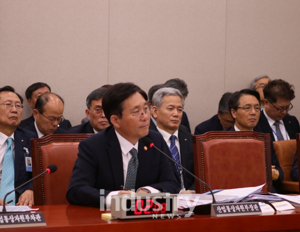 [국회, 인더스트리뉴스 최홍식 기자] 산업통상자원중소벤처기업위원회(이하 산자위) 국정감사가 열리고 있는 가운데 산업통상자원부 성윤모 장관이 국회의원의 질의에 답변하고 있다.