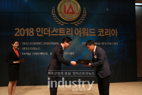 [인더스트리뉴스 방제일 기자] 제조산업 관련 기술개발과 제품개발에 새로운 가치를 창출한 기업을 발굴해 시상하는 ‘2018 인더스트리어워드코리아 대상’이 18일 한국프레스센터 국제회의장에서 개최됐다.
