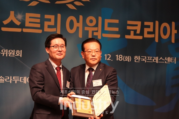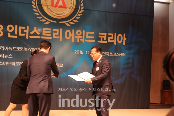 [인더스트리뉴스 방제일 기자] 제조산업 관련 기술개발과 제품개발에 새로운 가치를 창출한 기업을 발굴해 시상하는 ‘2018 인더스트리어워드코리아 대상’이 18일 한국프레스센터 국제회의장에서 개최됐다.