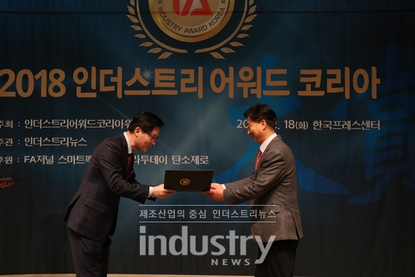 [인더스트리뉴스 이건오 기자] 제조산업 관련 기술개발과 제품개발에 새로운 가치를 창출한 기업을 발굴해 시상하는 ‘2018 인더스트리어워드코리아 대상’이 18일, 한국프레스센터 국제회의장에서 개최됐다.