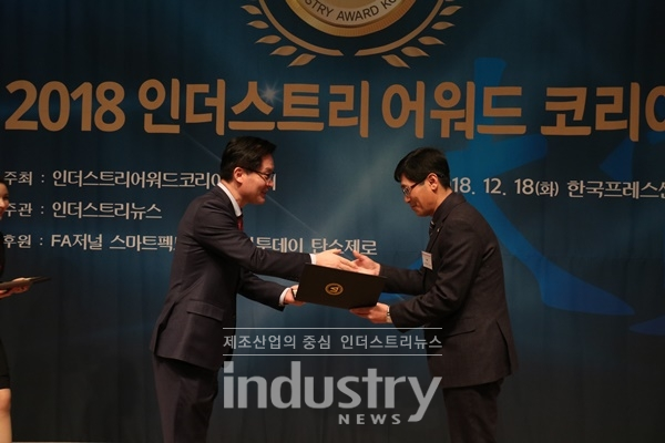 [인더스트리뉴스 이건오 기자] 제조산업 관련 기술개발과 제품개발에 새로운 가치를 창출한 기업을 발굴해 시상하는 ‘2018 인더스트리어워드코리아 대상’이 18일, 한국프레스센터 국제회의장에서 개최됐다.