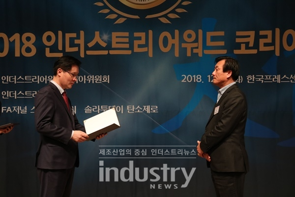 [인더스트리뉴스 이건오 기자] 제조산업 관련 기술개발과 제품개발에 새로운 가치를 창출한 기업을 발굴해 시상하는 ‘2018 인더스트리어워드코리아 대상’이 18일, 한국프레스센터 국제회의장에서 개최됐다.