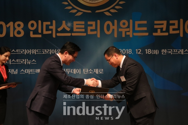[인더스트리뉴스 방제일 기자] 제조산업 관련 기술개발과 제품개발에 새로운 가치를 창출한 기업을 발굴해 시상하는 ‘2018 인더스트리어워드코리아 대상’이 18일 한국프레스센터 국제회의장에서 개최됐다.