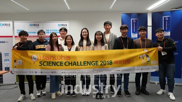 [인더스트리뉴스 이건오 기자] 한화그룹이 ‘한화 사이언스 챌린지(HANWHA Science Challenge) 2018’ 수상 고등학생들을 초청해 1월 7일부터 13일까지 독일 한화큐셀(작센안할트 주 비터펠드 소재), 에너지캠퍼스 뉘른베르크(ENERGIEcampus Nuernberg, 바이에른 주 뉘른베르크 소재), 친환경도시 프라이부르크(Freiburg, 바덴-뷔르템베르크 주 소재), 노벨상 수상자 21명을 배출한 스위스 취리히 연방공과대학 등을 견학하는 행사를 진행했다고 밝혔다.