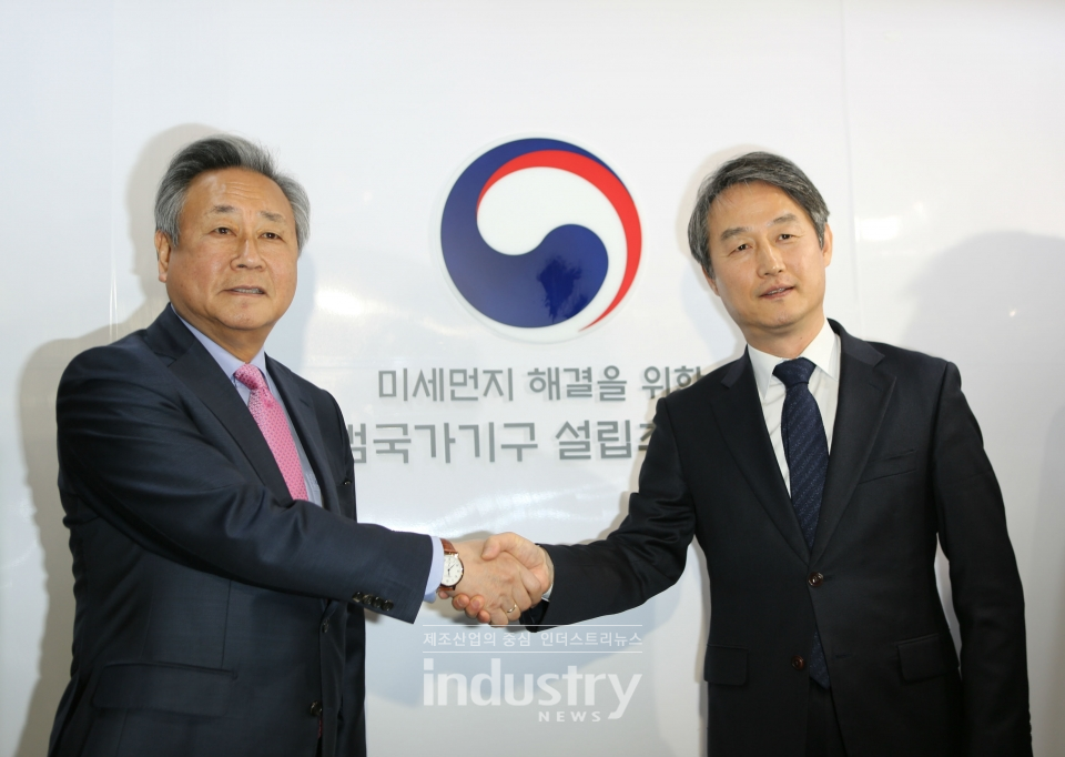 ![정부는 1일 ‘미세먼지 해결을 위한 범국가기구 설립추진단’ 발족식을 열었다. 왼쪽부터 공동단장을 맡은 김숙 전 유엔대사와 안병옥 전 환경부 차관 [사진=환경부]](https://cdn.industrynews.co.kr/news/photo/201904/30423_23401_5212.jpg)