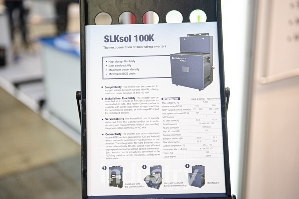[인더스트리뉴스 김일호 기자] 솔라라이트(대표 김월영)가 6월 19일부터 21일까지 경기도 고양 킨텍스(KINTEX) 제1전시장 4, 5홀 전시장에서 열리는 ‘2019 엑스포 솔라·ESS 엑스포·탄소제로 엑스포’에서 태양광 인버터를 전시했다.