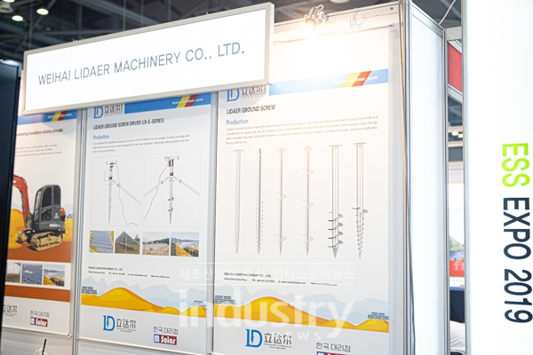 [인더스트리뉴스 김일호 기자] Weihai Liader Machenery(대표 Xinwei Zhang)가 6월 19일부터 21일까지 경기도 고양 킨텍스(KINTEX) 제1전시장 4, 5홀 전시장에서 열리는 ‘2019 엑스포 솔라·ESS 엑스포·탄소제로 엑스포’에서 그라운드 스크루를 전시했다.