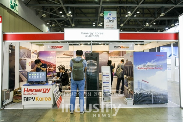 [인더스트리뉴스 김윤미 기자] 하너지코리아(대표 팡위엔단)가 6월 19일부터 21일까지 경기도 고양 킨텍스(KINTEX) 제1전시장 4, 5홀 전시장에서 열리는 ‘2019 엑스포 솔라·ESS 엑스포·탄소제로 엑스포’에서 외벽 및 지붕 일체형 태양광 모듈을 전시했다.