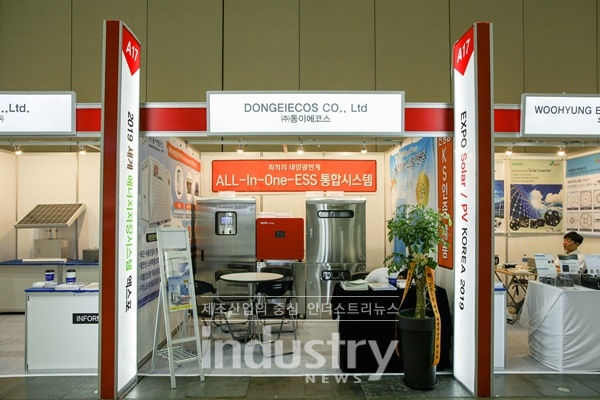 [인더스트리뉴스 김윤미 기자] 동이에코스(대표 설상법)가 6월 19일부터 21일까지 경기도 고양 킨텍스(KINTEX) 제1전시장 4, 5홀 전시장에서 열리는 ‘2019 엑스포 솔라·ESS 엑스포·탄소제로 엑스포’에서 올인원 ESS를 전시했다.