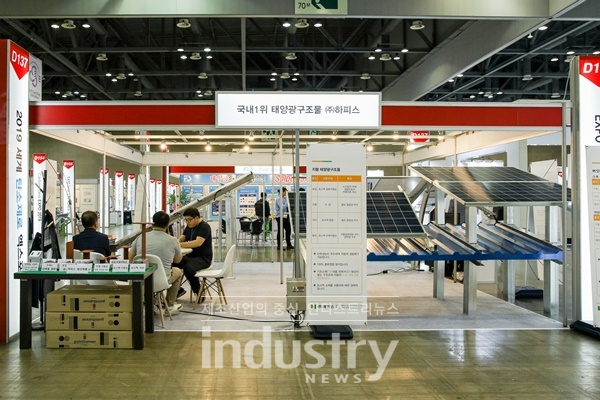 [인더스트리뉴스 김윤미 기자] 하피스(대표 최종이)가 6월 19일부터 21일까지 경기도 고양 킨텍스(KINTEX) 제1전시장 4, 5홀 전시장에서 열리는 ‘2019 엑스포 솔라·ESS 엑스포·탄소제로 엑스포’에서 지붕 태양광 구조물을 전시했다.