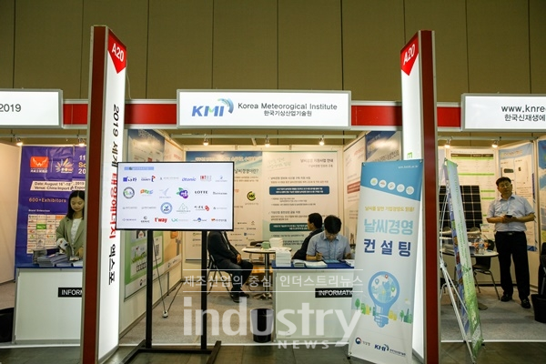 [인더스트리뉴스 김윤미 기자] 한국기상산업기술원(대표 류찬수)이 6월 19일부터 21일까지 경기도 고양 킨텍스(KINTEX) 제1전시장 4, 5홀 전시장에서 열리는 ‘2019 엑스포 솔라·ESS 엑스포·탄소제로 엑스포’에서 날씨경영 컨설팅을 진행했다.