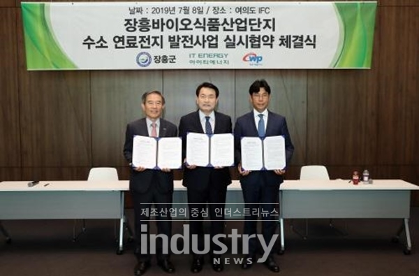 [인더스트리뉴스 정형우 기자] 장흥군은 아이티에너지, 한국서부발전과 7월 8일 서울 여의도 국제금융센터에서 수소연료전지 발전시설 건립을 위한 실시협약을 체결했다고 9일 밝혔다.