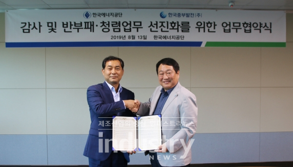 [인더스트리뉴스 정형우 기자] 한국에너지공단(상임감사 임상경)과 한국중부발전(상임감사 한동환)은 8월 13일 한국에너지공단 본사에서 ‘감사 및 반부패‧청렴업무 선진화를 위한 업무협약’을 체결했다고 밝혔다.
