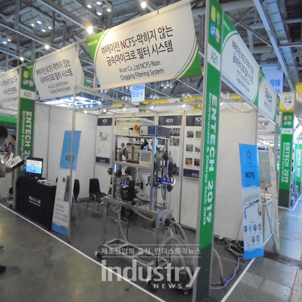 [인더스트리뉴스 이지혜 기자] 에이런(대표 오순봉)이 9월 18일부터 20일까지 부산 벡스코(BEXCO) 제1전시장에서 열리는 ‘2019 국제환경에너지산업전(ENTECH 2019)’에서 NCFS(막히지않는 금속마이크로 필터시스템)를 전시했다.