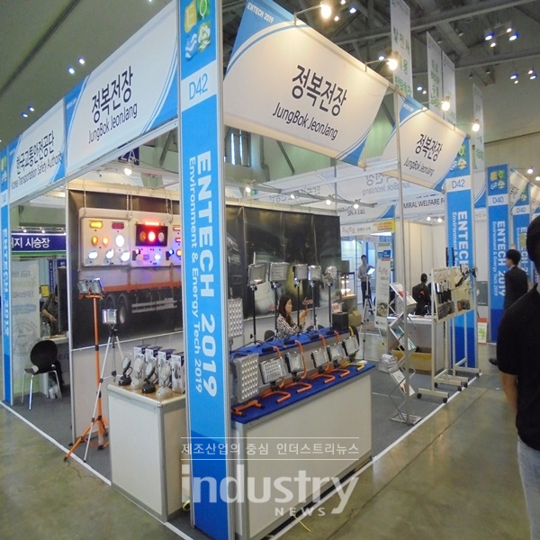 [인더스트리뉴스 이지혜 기자] 정복전장(대표 권영옥)이 9월 18일부터 20일까지 부산 벡스코(BEXCO) 제1전시장에서 열리는 ‘2019 국제환경에너지산업전(ENTECH 2019)’에서 투광작업등을 전시했다.