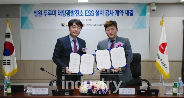 한전산업은 10월 10일, 한전산업 본사에서 레즐러(대표 장명균)와 ‘철원 두루미 태양광발전소 에너지저장장치(ESS) 설치 공사 계약’을 체결했다고 밝혔다.