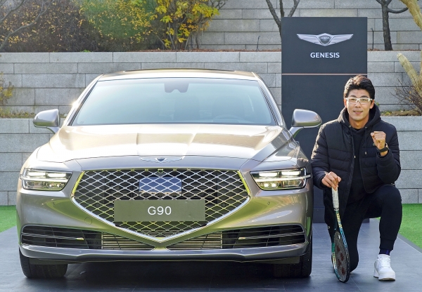 정현은 국내 남자 선수 중 가장 높은 순위인 남자프로테니스(ATP) 랭킹 19위에 오른 경험을 갖춘 세계적인 선수다. 제네시스는 2018년부터 정현 선수를 후원하고 있다.