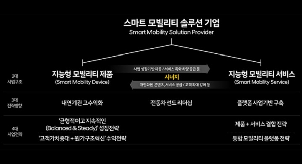 현대자동차는 플랫폼 기반의 서비스와 콘텐츠로 맞춤형 고객 가치를 제공하는 지능형 모빌리티 서비스를 새로운 사업으로 육성한다.
