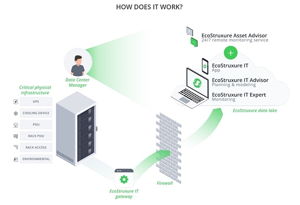 슈나이더일렉트릭의 데이터센터를 위한 ‘에코스트럭처 IT’는 전체 서비스가 클라우드 기반으로도 제공되기 때문에 ‘어셋 어드바이저’ 솔루션과 긴밀히 결합이 가능하다. 고객의 인프라 운영 관련 데이터가 게이트웨이를 통해 수집되고 필요한 데이터를 클라우드로 보내면 ‘에코스트럭처 IT’가 다양한 분석 서비스를 제공해 사용자가 필요한 서비스에 접근, 활용할 수 있다.