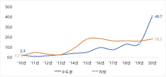 부동산114에 따르면 올해 서울의 아파트 청약경쟁률은 99.3대 1로, 100대 1에 육박한다. 이는 집계가 시작된 2000년 이후 가장 높은 경쟁률이며, 경기와 인천에 비해서도 2배 이상 높다. 7월말부터 시행되는 분양가상한제로 서울의 신규 공급감소 우려가 커지면서 희소가치가 부각된 데다, 분양가가 주변 시세에 비해 비슷하거나 낮은 수준으로 책정되면서 시세 차익에 대한 기대감이 커진 영향으로 분석된다.