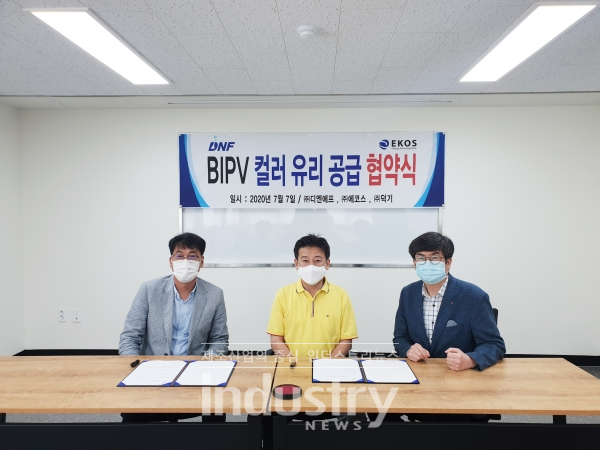 [인더스트리뉴스 정한교 기자] 디엔에프(대표 김명운)가 태양광에너지 사업 활성화를 위해 에코스(대표 배윤호)와 지난 7월 7일 ‘BIPV(건물일체형태양광) 컬러 유리 공급 협약식’을 체결했다.