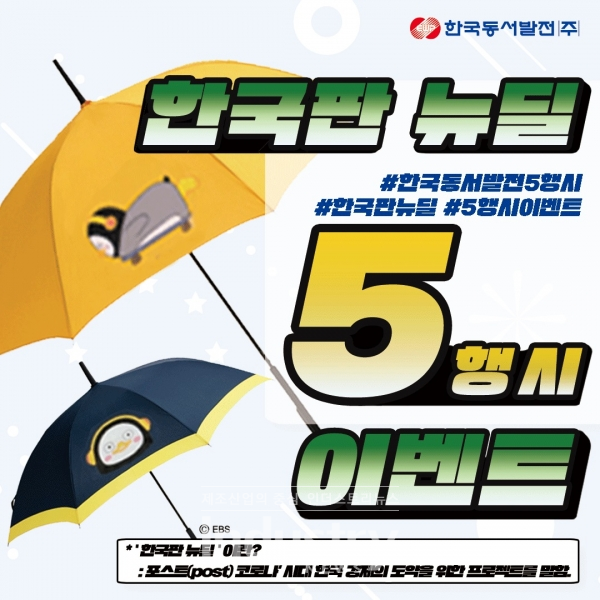 ‘좋아요’를 가장 많이 받은 참가자 20명에게는 동서발전이 한정 수량으로 제작한 펭수 우산을 제공한다. 자세한 내용은 동서발전 공식 인스타그램 및 페이스북, 네이버블로그에서 확인할 수 있다.