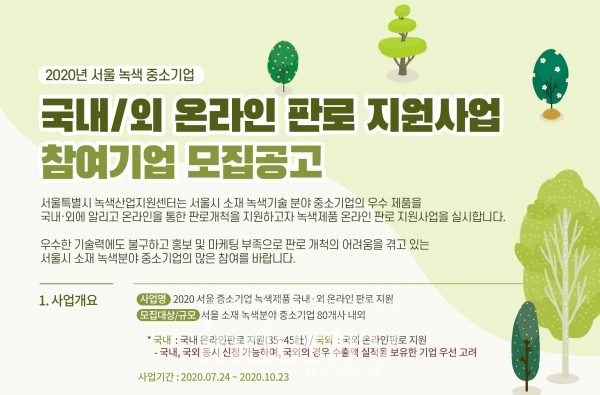 - 서울시, 녹색기업 판로개척 지원 ‘제2차 온라인 기획전’ 참여업체 모집