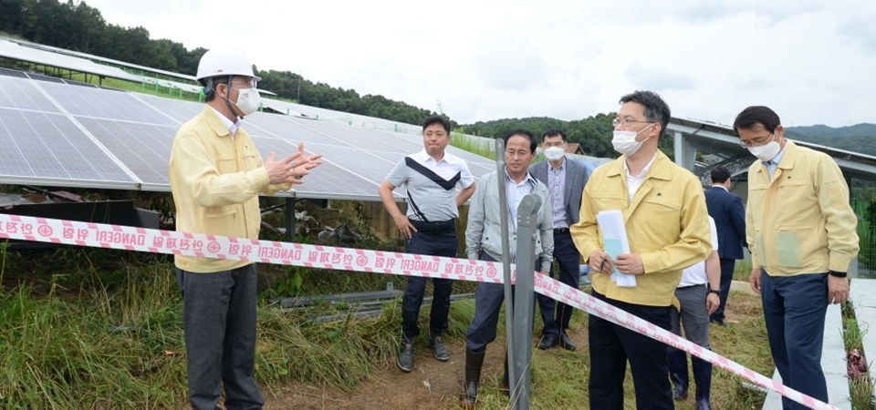 드림천안에너지는 최근 연일 지속된 집중호우로 인해 태양광발전설비의 일부 유실 및 옹벽 파손 등이 발생했으나 현재 토사 정리 등 복구 작업이 진행되고 있다. 성윤모 장관은 복구 작업 현장에서 땀 흘리고 있는 발전시설 관계자들을 격려하면서, 유관기관 모두가 태양광발전시설의 안전관리 강화에 최선을 다해줄 것을 당부했다.