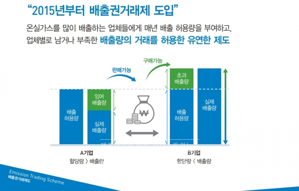 지난 2015년 1월부터 본격 시행된 바 있는 ‘온실가스 배출권 거래제’는 온실가스를 배출하는 사업장을 대상으로 연단위 배출권을 할당해 할당범위 내에서 배출할 수 있도록 하고, 할당된 사업장의 배출량을 평가해 여분, 혹은 부족분의 배출권에 대해서는 사업장 간 거래를 허용하는 제도를 일컫는다.