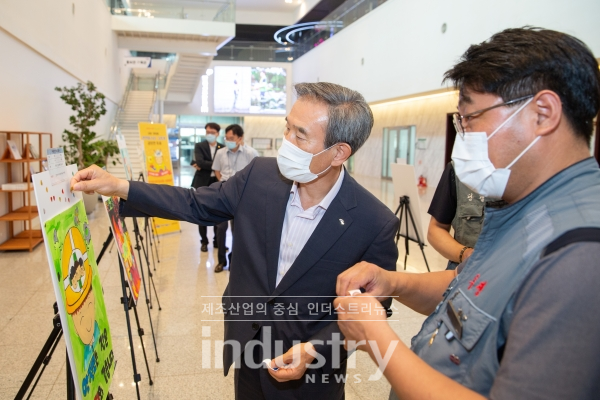 서부발전은 본사 로비에 작품을 전시하고, 전 직원이 참여한 스티커 투표를 통해 대상과 최우수상을 선별했다. 수상은 초등학생과 일반분야로 나눠 진행됐다. 수상자 5명에게는 서부발전 김병숙 사장이 직접 꽃다발과 코로나19 극복 관광상품권, 액자를 전달했다.