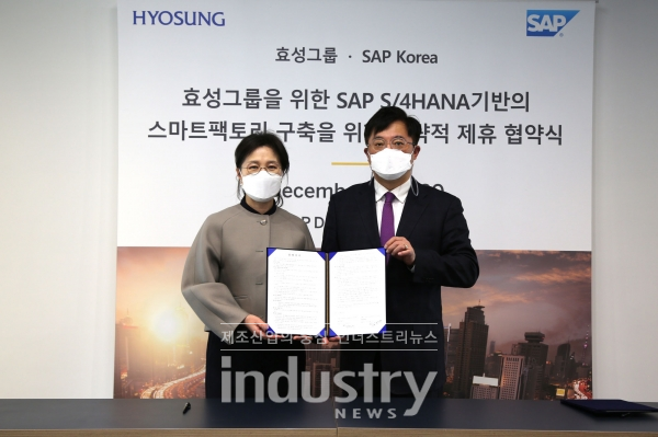 [인더스트리뉴스 최종윤 기자] 효성ITX가 글로벌 IT업체인 SAP코리아와 효성그룹의 차세대 스마트팩토리 구축에 나선다. 효성ITX는 12월 8일 판교에 위치한 SAP 디자인 앱하우스(SAP Design App Haus)에서 SAP코리아와 스마트팩토리 솔루션 구축을 위한 MOU를 체결했다고 밝혔다.
