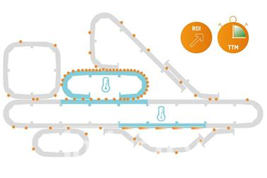 소프트웨어 시뮬레이션은 트랙의 어느 부분이 냉각된 모터 세그먼트를 필요로 하는지 나타낸다. 트랙 세그먼트는 시리얼, 병렬 또는 둘의 조합으로도 연결할 수 있다. 실제로 필요한 곳으로 냉각을 제한하는 기능은 ACOPOStrak 냉각 시스템을 비용 효율적으로 만든다.