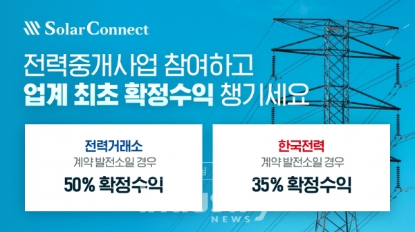 [인더스트리뉴스 정한교 기자] 솔라커넥트(대표 이영호)가 태양광발전소의 주 수입원인 SMP, REC 이외에도 추가적인 수익 창출이 가능한 전력중개사업 참여 발전소를 모집한다고 12월 21일 밝혔다.