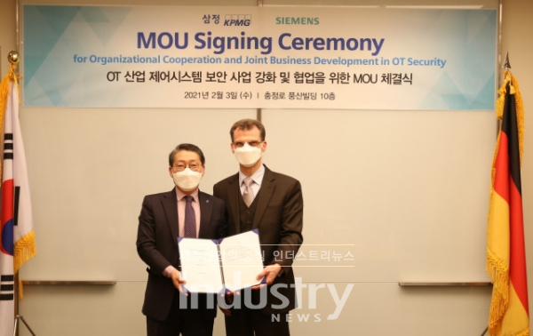 [인더스트리뉴스 최종윤 기자] 한국지멘스 디지털 인더스트리(Digital Industries, 대표 토마스 슈미드)가 삼정KPMG(회장 김교태)와 2월 3일 오후 서울 서대문구 충정로 한국지멘스 본사에서 OT(산업운영기술) 및 ICS(산업제어시스템) 보안 사업 강화와 신기술 연구 협력을 위한 업무협약(MOU)을 체결했다.