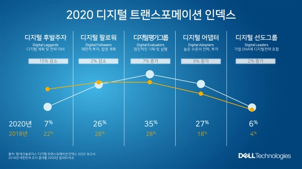 [인더스트리뉴스 최종윤 기자] 델 테크놀로지스(Dell Technologies)가 각국의 디지털 혁신 현황을 조사한 ‘2020 디지털 트랜스포메이션 인덱스 2020(Digital Transformation Index, 이하 DTI 2020)’ 보고서에 대한민국 기업들의 응답 데이터를 더해 추가 분석 결과를 발표했다.
