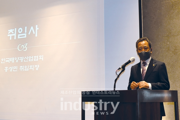 [인더스트리뉴스 정한교 기자] 제5대 한국태양광산업협회가 본격적인 출항을 알렸다. 신임 회장으로 취임한 에스에너지 홍성민 회장은 취임사를 통해 향후 국내 태양광 산업에서 산학연의 협력이 매우 중요하다고 강조했다.