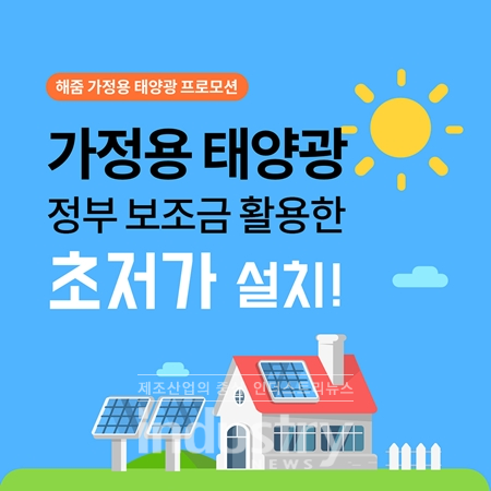 [인더스트리뉴스 정한교 기자] 해줌(대표 권오현)이 5년 연속 한국에너지공단 2021년 신재생에너지 보급지원사업 참여기업에 선정된 것을 기념해 주택지원사업을 활용한 가정용 태양광 초저가 프로모션을 선착순으로 진행한다고 지난 4월 6일 밝혔다.