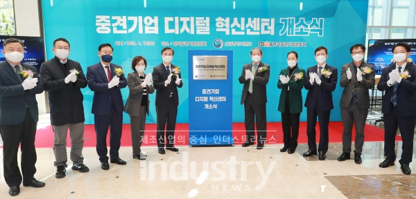 산업부는 지난 2월 발표한 ‘중견기업 도약을 위한 등대 프로젝트’ 실행의 주요 과제로 ‘중견기업의 디지털화’를 설정했고, 이날 디지털 전환의 서포팅 타워가 될 혁신센터를 열었다.