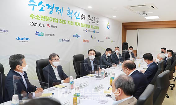 [인더스트리뉴스 정한교 기자] 정부가 수소경제 활성화를 위한 수소전문기업 육성에 본격 나선다. 산업통상자원부는 문승욱 장관이 지난 6월 1일 충남 아산 소재 유한정밀(수소차 연료전지 분리판 제조기업)을 방문했다고 밝혔다.