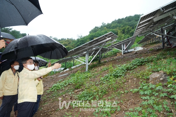[인더스트리뉴스 정한교 기자] 본격적인 장마를 알리는 비가 내렸던 지난 7월 3일, 최병암 산림청장이 장마 시작으로 폭우 피해가 우려되는 산지태양광 시설지에 대해 2차 중점 현장점검을 실시했다.