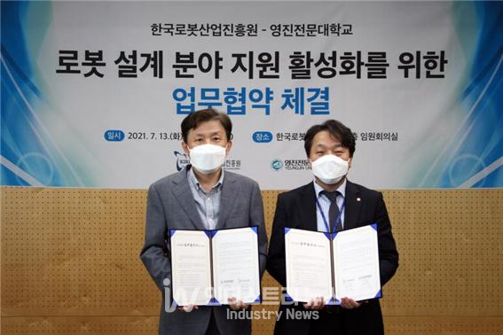 한국로봇산업진흥원과 영진전문대학교는 7월 13일, 한국로봇산업진흥원 7층 임원 회의실에서 업무협약을 체결하고, 로봇설계 분야 맞춤형 인재양성과 로봇기업의 설계 지원 산학 협력 프로그램(로봇 HW설계 산학협력 지원사업)을 진행했다.