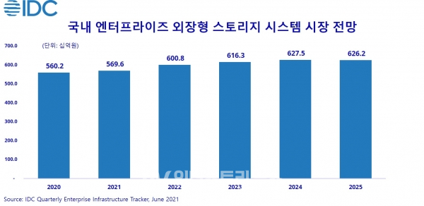 [인더스트리뉴스 최종윤 기자] IT 시장분석 및 컨설팅 기관인 인터내셔날데이터코퍼레이션코리아(International Data Corporation Korea, 이하 한국IDC)는 최근 발간한 ‘2021년 엔터프라이즈 외장형 스토리지 시스템 시장 전망 보고서’에서 국내 산업용 외장형 스토리지 시스템 시장의 향후 5년간 연평균 성장률(CAGR)은 2.3% 증가해 2025년 6,262억원의 매출 규모에 이를 전망이라고 7월 16일 밝혔다.