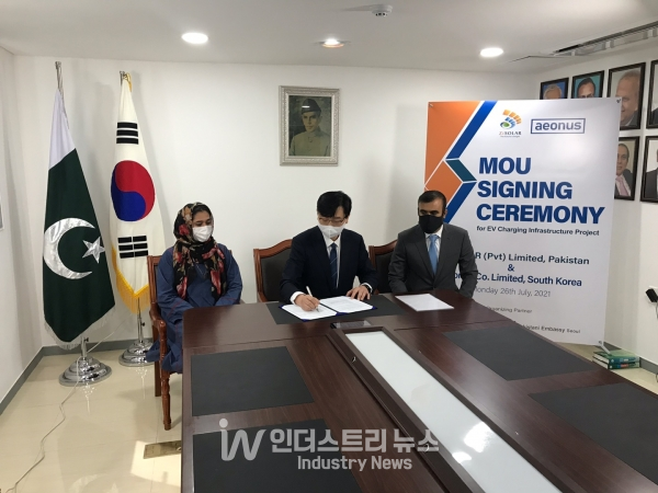 [인더스트리뉴스 최종윤 기자] 탄소중립 관련 스타트업 이온어스가 7월 26일 오후 3시 주한 파키스탄 대사관에서 파키스탄의 중견 에너지기업인 지 솔라(Zi Solar)와 ‘파키스탄내 전기차 충전사업에 필요한 인프라 구축’을 위한 업무협약을 체결했다.