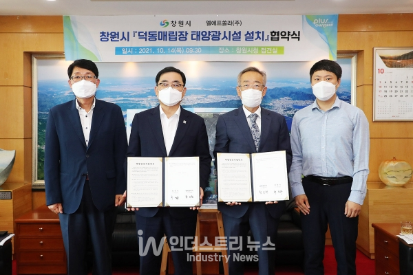 [인더스트리뉴스 정한교 기자] 창원시(시장 허성무)는 지난 10월 14일 오전 10시 시청 접견실에서 엘에프쏠라(대표 황보현)와 덕동매립장 내 태양광발전시설 설치사업을 위한 업무협약식을 개최했다고 밝혔다.